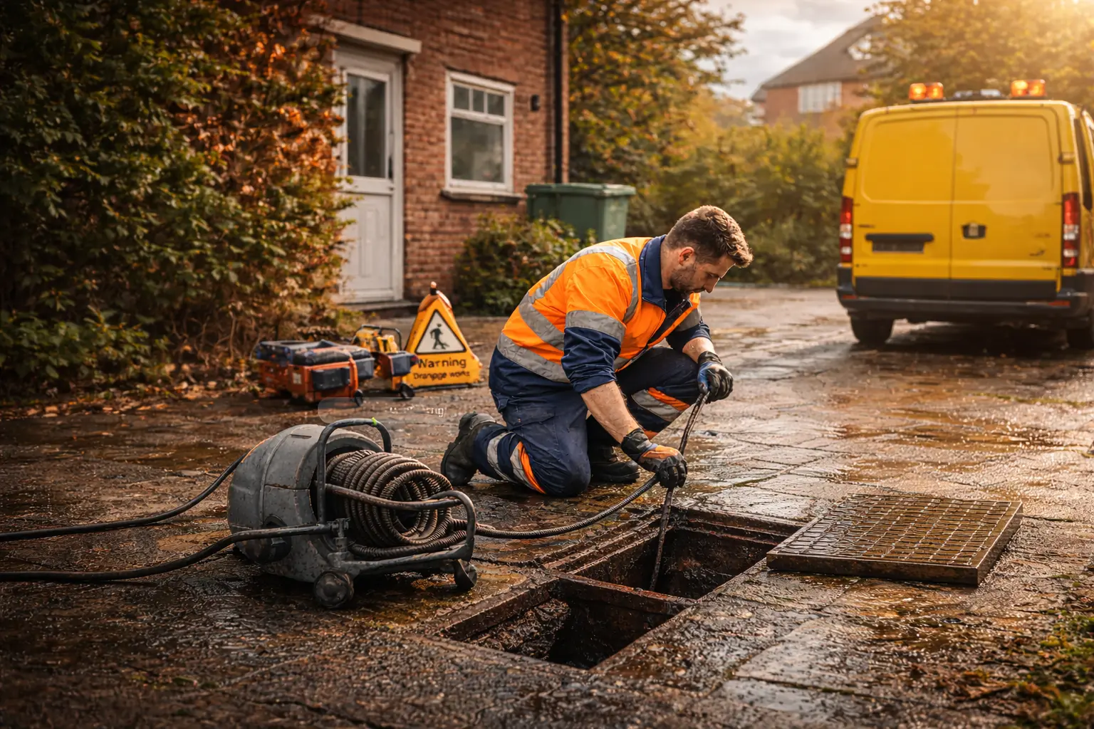 Situations requiring an emergency response include sewage backing up into your property, flooding from blocked or collapsed drains, overflowing manholes, and any drainage failure presenting a health risk. If in doubt, call us and we will advise whether an emergency visit is needed.
